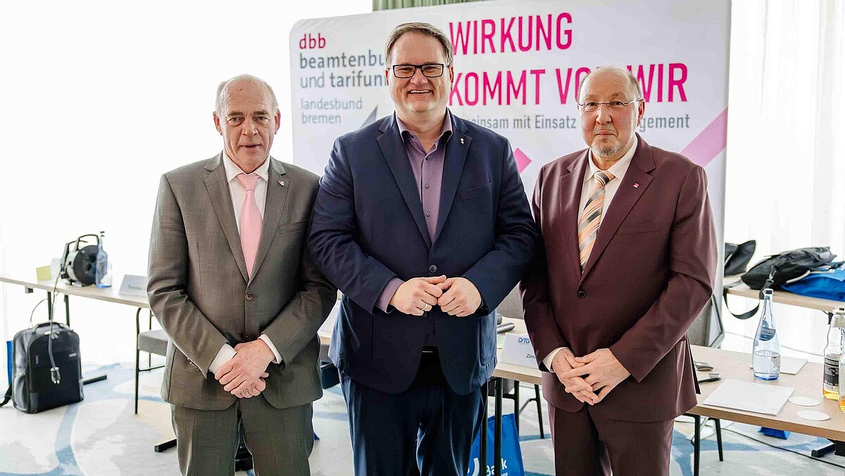 Von der Politik erwartet Schmitt auch ein klares Bekenntnis zum Berufsbeamtentum: „Wir brauchen keine Diskussionen über die Einbeziehung der Beamten in die gesetzliche Rentenversicherung. Das ist ein Angriff auf Grundprinzipien des Berufsbeamtentums und völlig indiskutabel. Mit solchen Überlegungen gewinnt man nicht das Vertrauen der jungen Kolleginnen und Kollegen, die jetzt ihre Karriere als Beamte starten.“ Schmitt erinnerte bei der Gelegenheit den anwesenden Bremer Finanzsenator, das Tarifergebnis, welches zwei Wochen zuvor für die Landesbeschäftigten erzielt wurde, zeitnah und systemgerecht auf die Beamtinnen und Beamten übertragen.